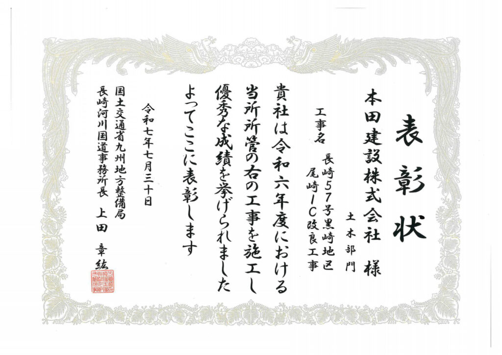 表彰者 国土交通省九州地方整備局長崎河川国道事務所長