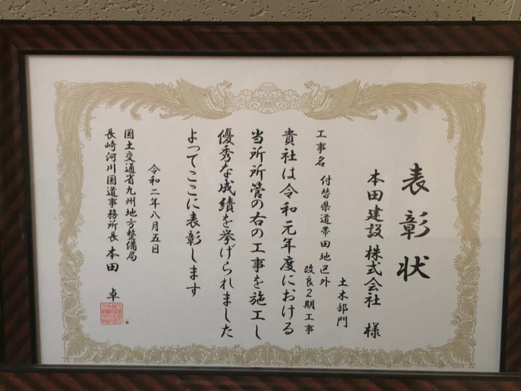 表彰者 国土交通省九州地方整備局長崎河川国道事務所長